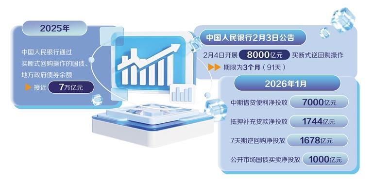 临近春节,资金面运行的季节性特征开始显现,流动性情况吸引着多方关注。中国人民银行2月3日公告,为保持银行体系流动性充裕,2月4日将以固定数量、利率招标、多重价位中标方式开展8000亿元买断式逆回购操作,期限为3个月(91天)。