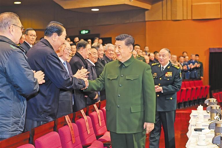 下午4时许,习近平来到老同志中间,全场响起热烈掌声。习近平同大家亲切交流、互致问候,关切询问他们的身体和生活情况,共同回顾过去一年党、国家和军队事业走过的不平凡历程、取得的重大成就。老同志们一致表示,要更加紧密地团结在以习近平同志为核心的党中央周围,坚持以习近平新时代中国特色社会主义思想为指导,深入贯彻习近平强军思想,深刻领悟“两个确立”的决定性意义,坚决做到“两个维护”,贯彻军委主席负责制,弘扬光荣传统、永葆政治本色,坚定信念、勇毅前行,为如期实现建军一百年奋斗目标、高质量推进国防和军队现代化作贡献。