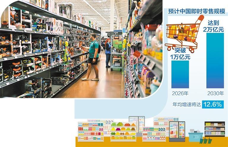 作为零售新业态、消费新模式,即时零售依托即时配送体系,致力于打造“线上下单,30分钟送达”的消费体验,满足消费者“即需即得”的迫切性需求,市场规模在万亿元级。商务部国际贸易经济合作研究院最新报告指出,2026年中国即时零售规模将突破1万亿元,预计到2030年将达到2万亿元,2026年至2030年间,年均增速将达12.6%。