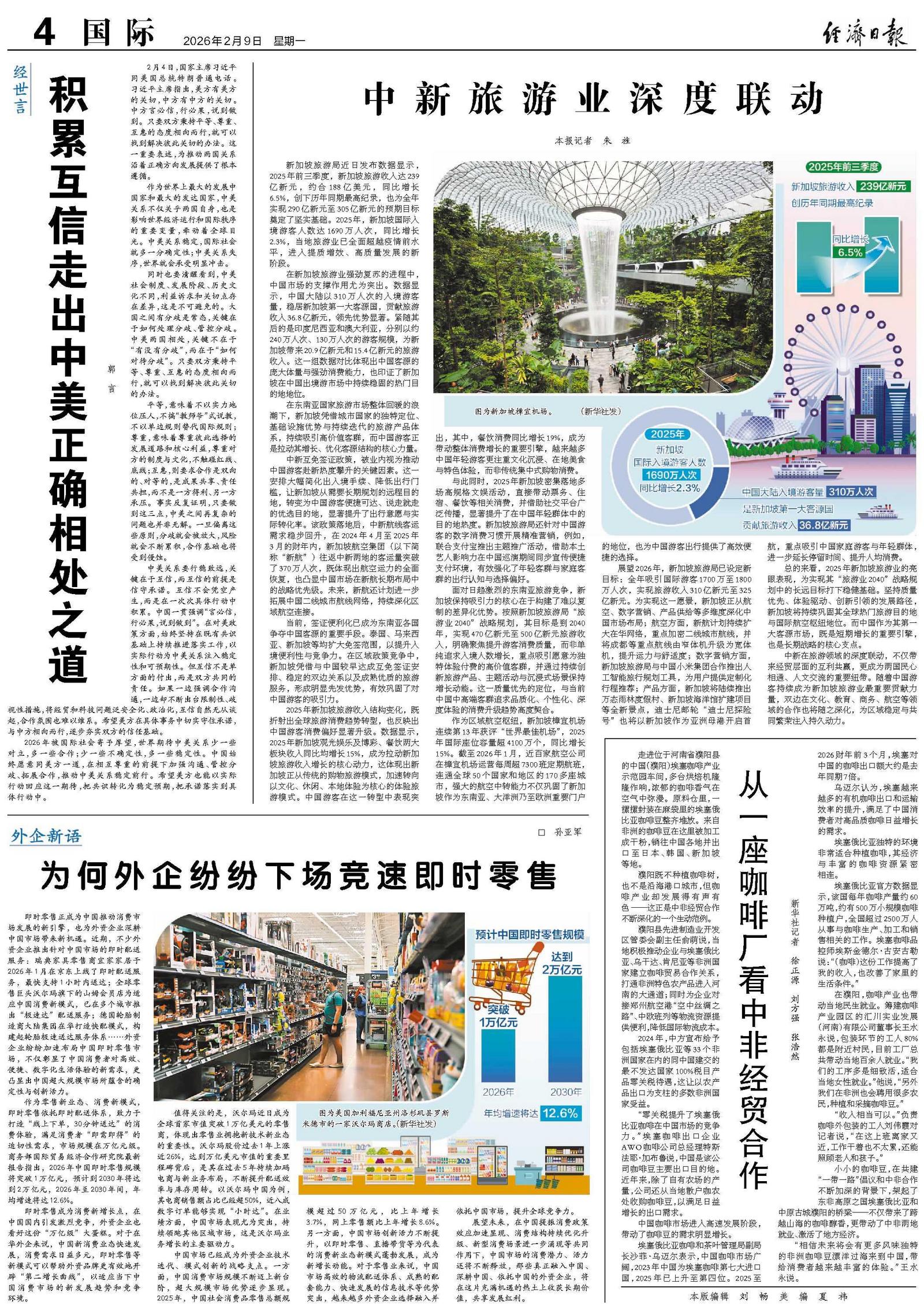 中国市场已经成为外资企业技术迭代、模式创新的战略支点。一方面,中国消费市场规模不断迈上新台阶,超大规模市场优势逐步显现。2025年,中国社会消费品零售总额规模超过50万亿元,比上年增长3.7%,网上零售额比上年增长8.6%。另一方面,中国市场创新活力不断提升,以即时零售、直播带货等为代表的消费新业态新模式蓬勃发展,成为新增长动能。对于零售业来说,中国市场高效的物流配送体系、成熟的配套能力、快速发展的信息技术等优势突出,越来越多外资企业选择融入并依托中国市场,提升全球竞争力。