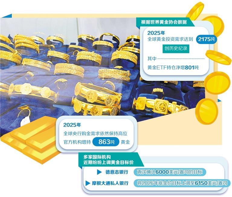 从技术层面看,金价在2月3日创下2008年11月以来最大单日涨幅,相对强弱指标(RSI)从超卖区间快速回升至50以上,这些信号均表明市场情绪已从恐慌回归理性。摩根大通、德意志银行等头部投行近几日纷纷增持黄金ETF,全球持仓量较1月末净增62吨。多家国际机构近期纷纷上调黄金目标价。德意志银行在报告中再次确认6000美元/盎司的目标,认为“推动金价上涨的主要驱动因素——央行黄金储备增加、美元信用弱化、地缘风险持续等均未改变”;摩根大通私人银行更是将2026年底金价目标上调至6150美元/盎司,其核心依据在于新兴市场央行的“追赶式增加黄金储备”。数据显示,新兴市场央行黄金储备占比仍处于低位,未来配置空间较大。