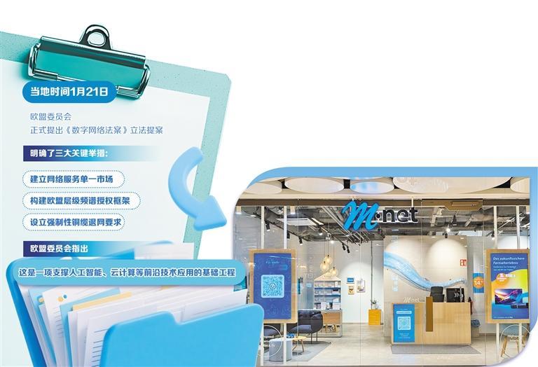 近日,欧盟委员会正式提出《数字网络法案》立法提案,开启了欧洲数字基础设施治理的又一重大变革。这份旨在统一欧盟各国网络连接规则的提案,以简化监管流程、优化资源配置为核心,明确了三大关键举措:建立网络服务单一市场,企业仅需在单一成员国注册即可在全欧盟境内提供服务;构建欧盟层级频谱授权框架,推行长期化、默认可续的频谱许可证制度;设立强制性铜缆退网要求,责令成员国需在2029年前提交转型方案,在2030年至2035年间全面淘汰传统铜缆网络,为光纤与移动先进网络腾出发展空间。欧盟委员会指出,这是一项支撑人工智能、云计算等前沿技术应用的基础工程,是欧洲在数字基础设施一体化进程中迈出的实质性步伐。