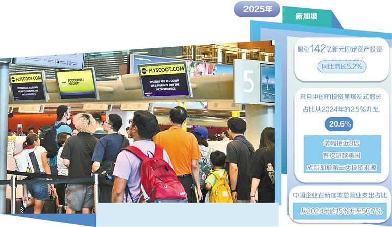新加坡经济发展局2月9日发布的2025年度投资报告显示,尽管全球地缘政治与经济环境持续动荡,新加坡在2025年仍吸引了142亿新元固定资产投资,同比增长5.2%。其中,来自中国的投资大幅增长,占比从2024年的仅2.5%升至20.6%,增幅接近8倍,首次超越美国,成为新加坡第二大投资来源,仅次于欧洲整体。