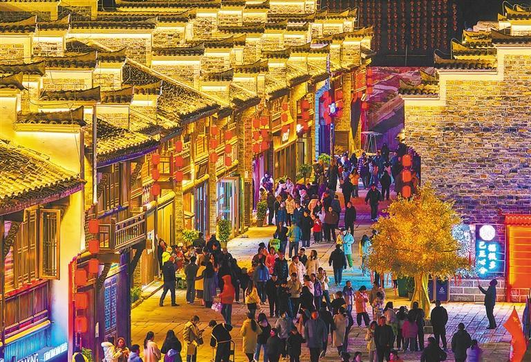 近年来,江西上饶市铅山县不断丰富夜间消费场景,挖掘夜间经济潜能。图为夜色中的铅山县河口老街,游人如织。丁铭华摄(中经视觉)