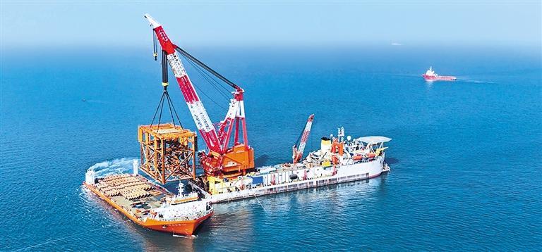 2月13日,渤中26—6油田开发项目(二期)全部导管架安装就位,标志着项目工程建设取得重要阶段性进展,为二期项目按期投产奠定坚实基础。这是当日拍摄的导管架安装现场。杜鹏辉摄(新华社发)