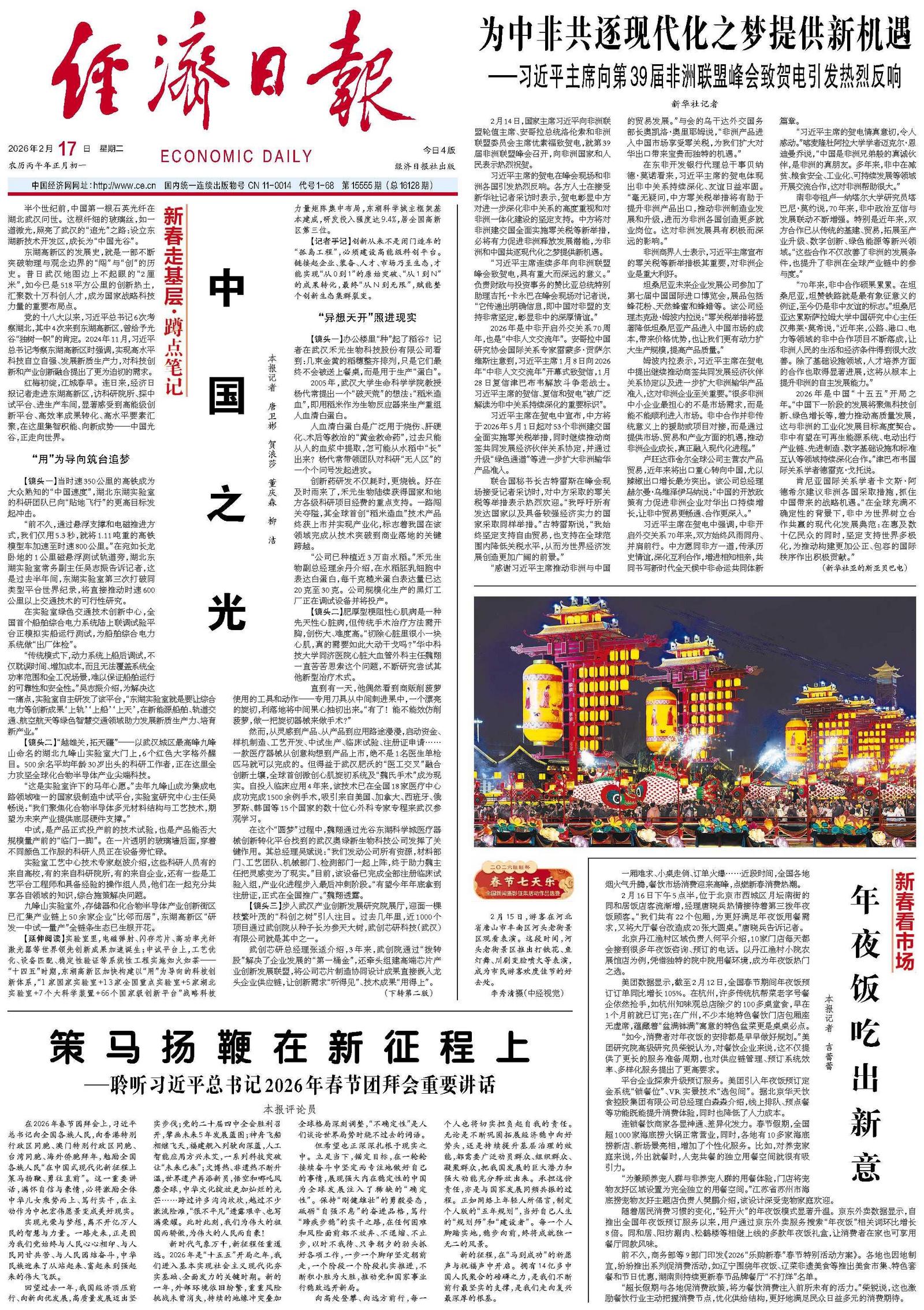 红梅初绽,江城春早。连日来,经济日报记者走进东湖高新区,访科研院所、探中试平台、进生产车间,显著感受到高能级创新平台、高效率成果转化、高水平要素汇聚,在这里集智积能、向新成势——中国光谷,正走向世界。