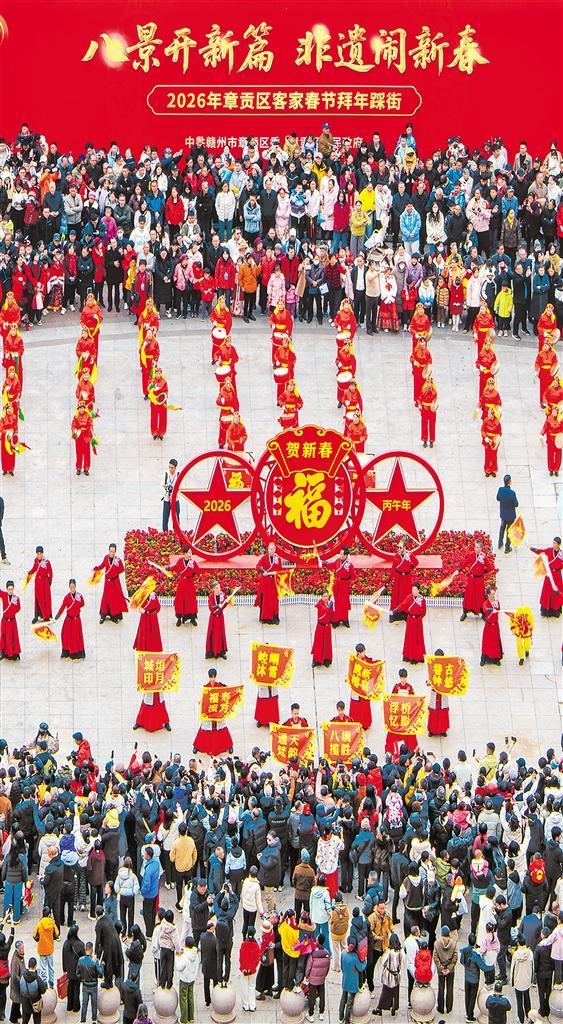 ▲2月17日,江西省赣州市章贡区长征广场的踩街民俗文化活动为春节增添浓浓的年味。