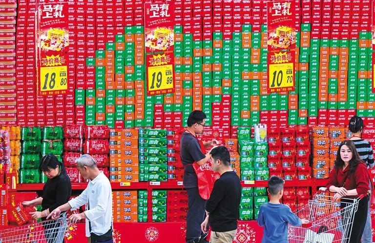 2月14日,广西壮族自治区梧州市万秀区一超市内货源充足,市民在采办年货。