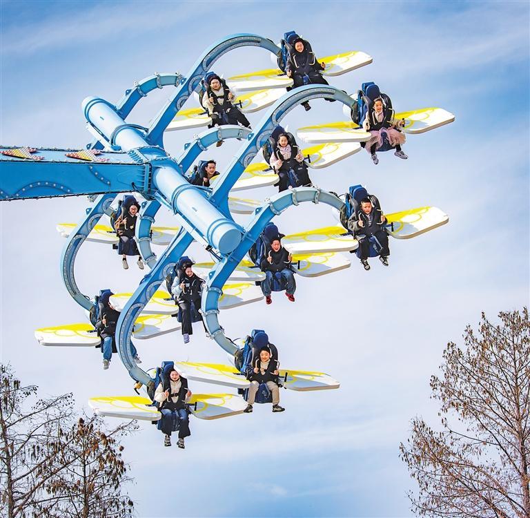2月19日,游客在安徽省芜湖市松鼠小镇体验游乐项目。春节期间,小镇推出各式主题活动,为游客特别是亲子家庭带来更加丰富的游玩体验。