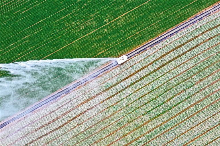 2月24日,河南省商丘市睢县后台乡的一处农田上,无人智能灌溉机器人正在进行水肥一体化喷灌作业。早春时节,当地农民抢抓农时,有序开展农事生产,田间地头一派忙碌景象。徐泽源摄(中经视觉)