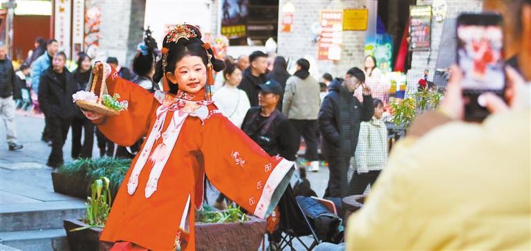 ◀2月19日,贵州省安顺古城历史文化街区人流如潮。