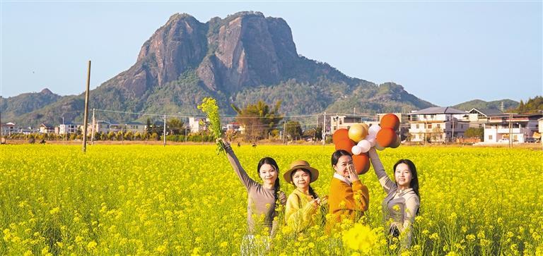 ▼2月18日,广东省梅州市平远县石正镇中东村油菜花迎春绽放,吸引众多游客前来赏花游玩。冯锡权摄(中经视觉)