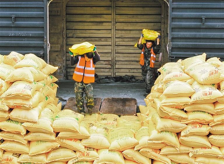 ▲2月25日,江西省南昌向塘铁路货场,工作人员在装卸化肥。胡国林摄(中经视觉)