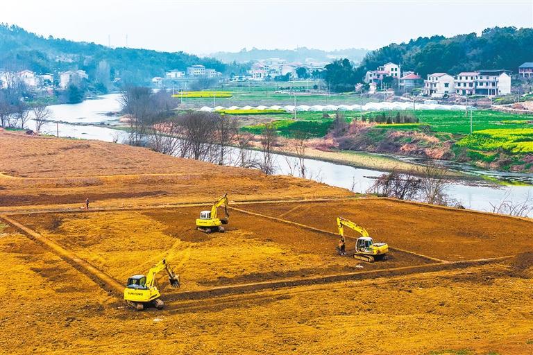 ◀2月23日拍摄的湖南省双峰县梓门桥镇青石铺村高标准农田项目建设现场。2025年我国支持新建和改造提升高标准农田7568万亩,累计建成超10亿亩。李建新摄(中经视觉)