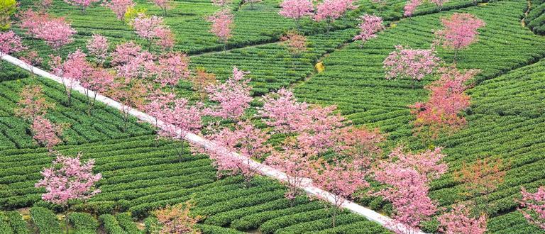 2月25日,四川省雅安市名山区新店镇新星村,茶园里樱花盛开,吸引游客休闲赏春。近年来,当地在茶园广泛栽花置景,增加旅游设施,促进农旅融合发展。