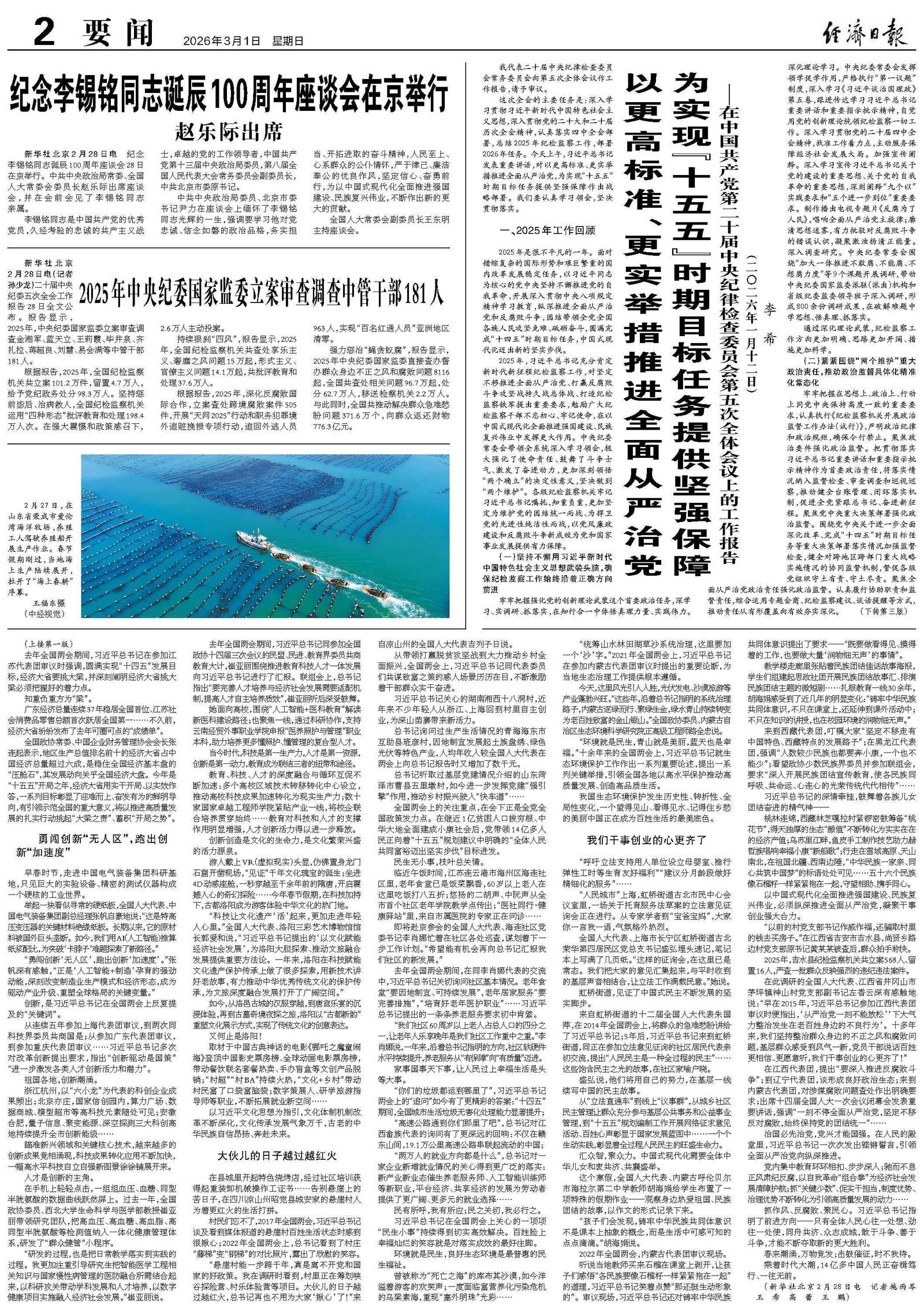 2025年,习近平总书记充分肯定新时代新征程纪检监察工作,对坚定不移推进全面从严治党、打赢反腐败斗争攻坚战持久战总体战、打造纪检监察铁军提出重要要求,勉励广大纪检监察干部不忘初心、牢记使命,在以中国式现代化全面推进强国建设、民族复兴伟业中发挥更大作用。中央纪委常委会带领全系统深入学习领会,极大强化了使命责任、鼓舞了斗争士气、激发了奋进动力,更加深刻领悟“两个确立”的决定性意义,坚决做到“两个维护”。各级纪检监察机关牢记习近平总书记嘱托,知重负重,更加坚定为维护党的团结统一而战、为捍卫党的先进性纯洁性而战,以党风廉政建设和反腐败斗争新成效为党和国家事业发展提供有力保障。