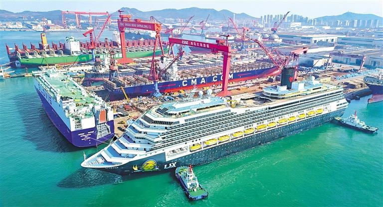 2月28日,“理想”号邮轮完成常规坞修及保养任务,在黄岛边检护航下,缓缓驶离中国船舶集团青岛北海造船有限公司码头。据悉,“理想”号邮轮是来自意大利的10.3万总吨邮轮,于2025年12月24日进场开展常规坞修,这是山东省首次完成10万吨级以上邮轮常规坞修及保养作业。张进刚摄(中经视觉)