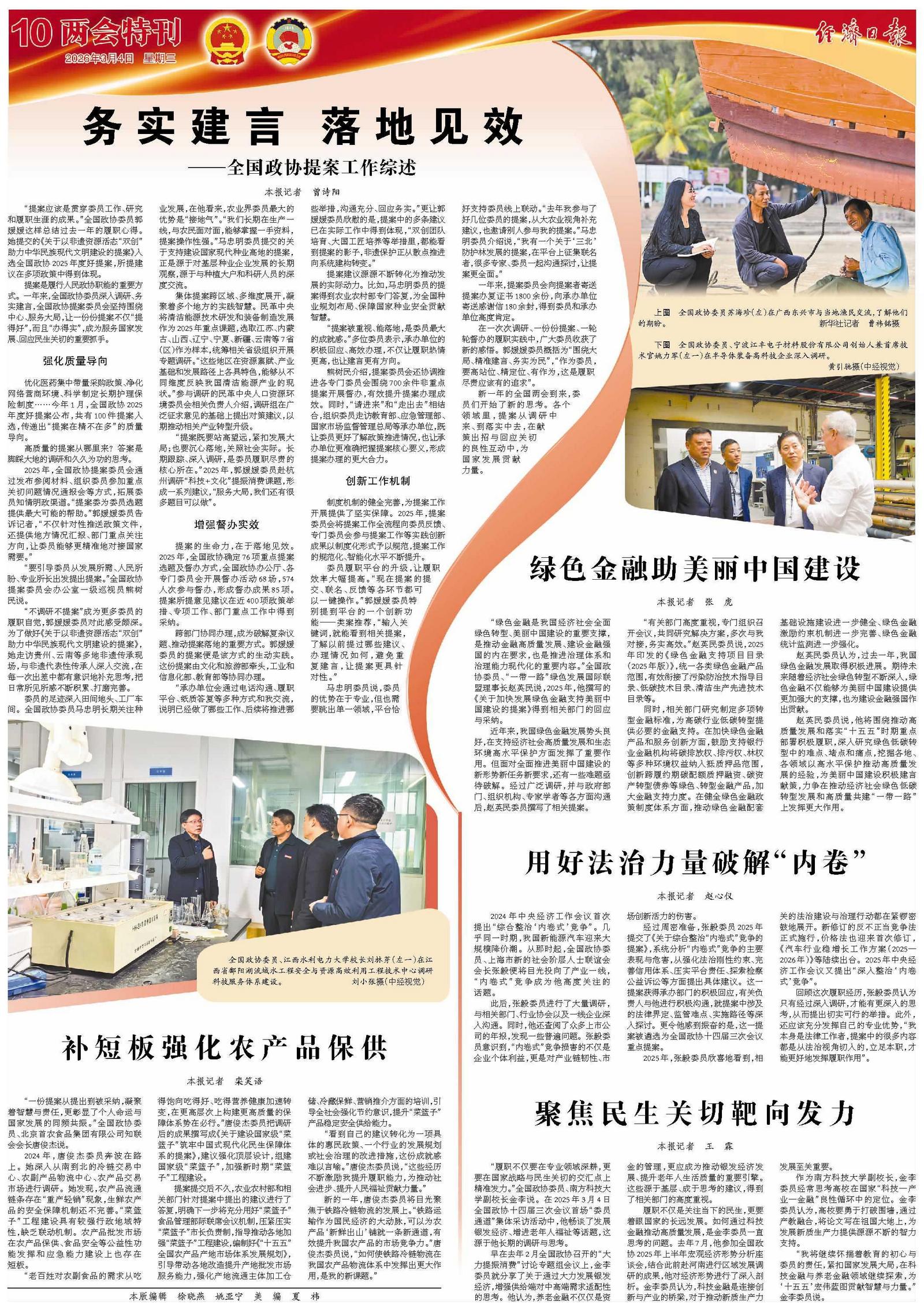 “看到自己的建议转化为一项具体的惠民政策、一个行业的发展规划或社会治理的改进措施,这份成就感难以言喻。”唐俊杰委员说,“这些经历不断激励我提升履职能力,为推动社会进步、提升人民福祉贡献力量。”