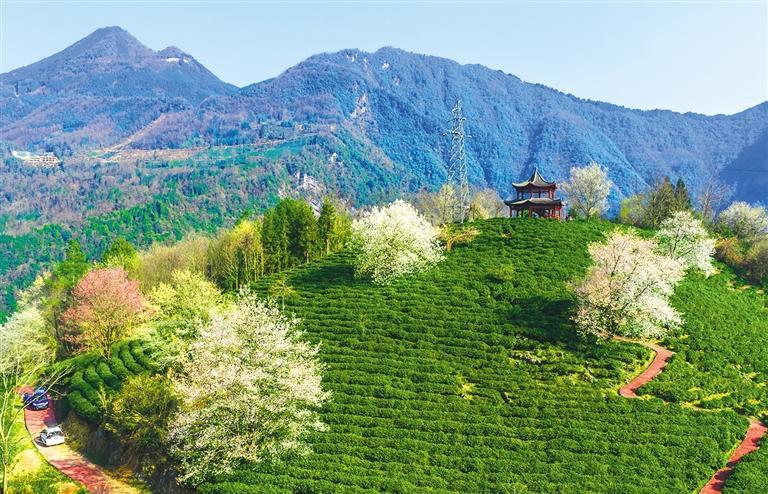 日前,四川北川羌族自治县擂鼓镇盖头山茶园春色如画,吸引众多游客踏春观光。当地在浙川东西部协作机制赋能下,合作共建智慧茶园2000余亩,助力区域产品实现品牌兴农。张 波摄(中经视觉)