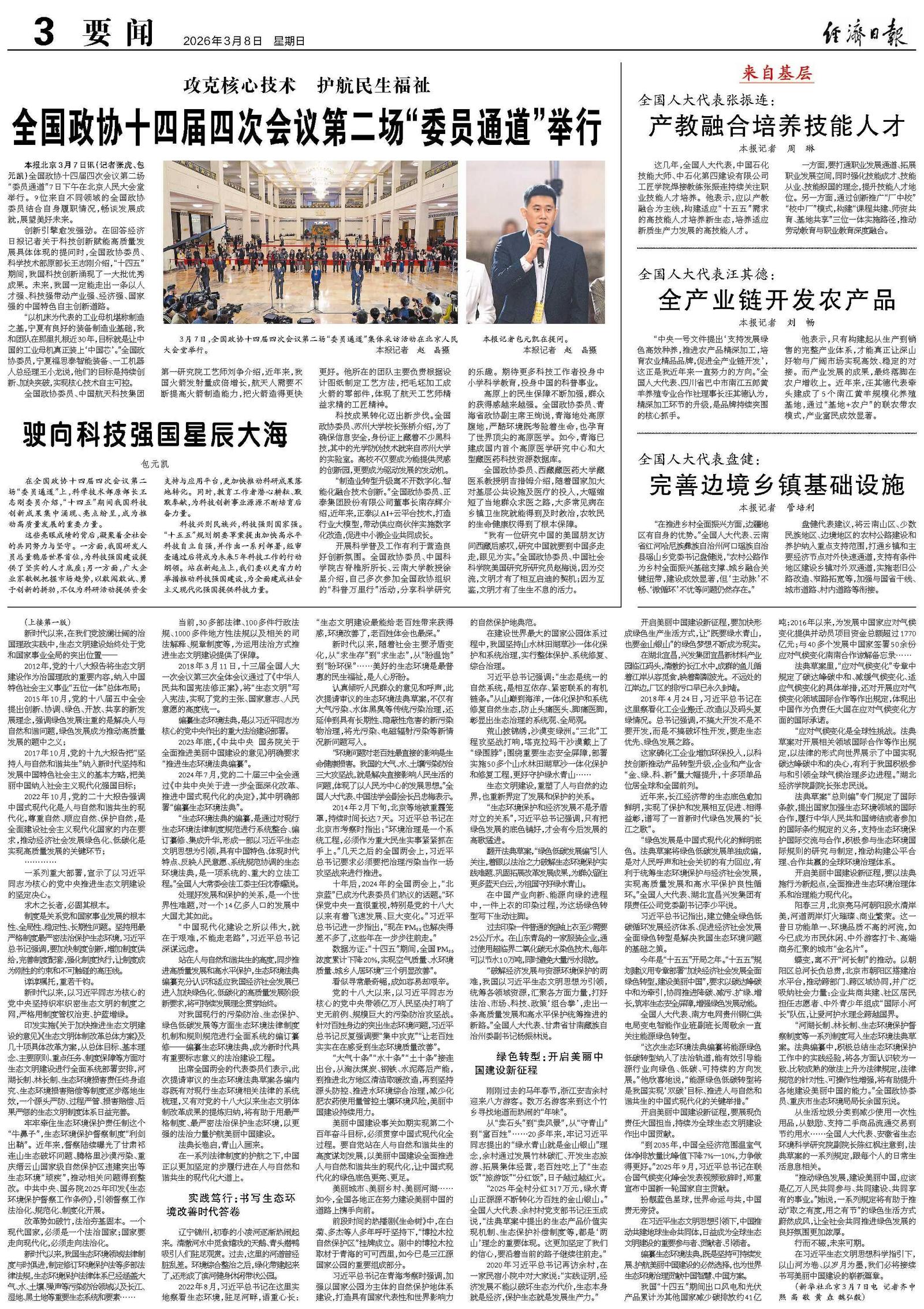 创新引擎愈发强劲。在回答经济日报记者关于科技创新赋能高质量发展具体体现的提问时,全国政协委员、科学技术部原部长王志刚介绍,“十四五”期间,我国科技创新涌现了一大批优秀成果。未来,我国一定能走出一条以人才强、科技强带动产业强、经济强、国家强的中国特色自主创新道路。