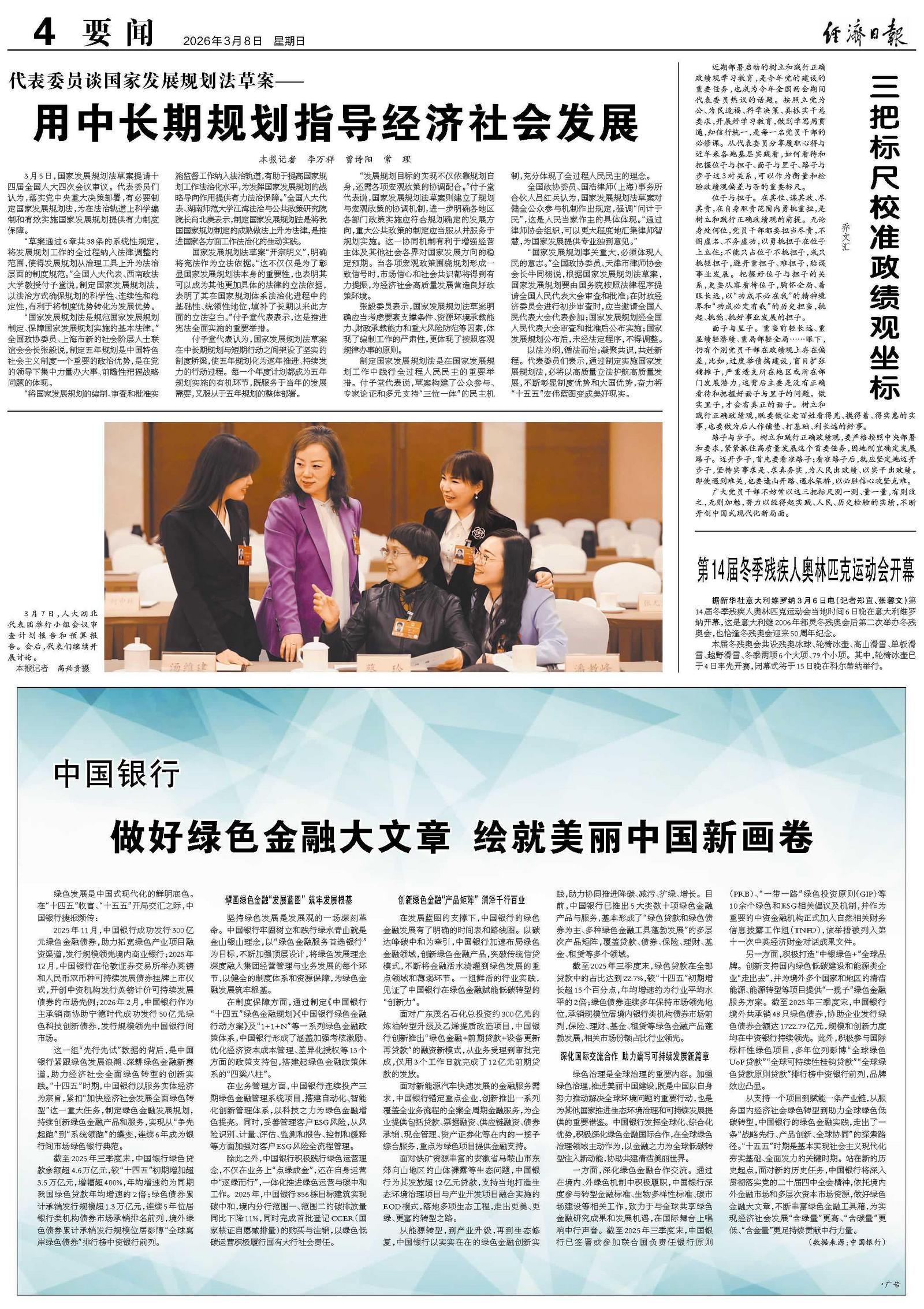 以法为纲,循法而治;凝聚共识,共赴新程。代表委员们表示,通过制定实施国家发展规划法,必将以高质量立法护航高质量发展,不断彰显制度优势和大国优势,奋力将“十五五”宏伟蓝图变成美好现实。