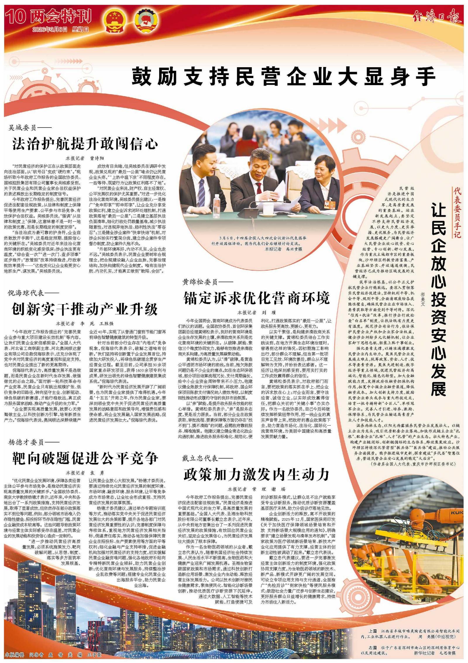 “进一步推动民营经济高质量发展,必须系统施策发力、靶向破解问题,从思想、制度、落实等多方面筑牢发展根基,让民营企业放心大胆发展。”杨德才委员说,要通过持续优化民营经济发展的制度环境、市场环境、融资环境、服务环境,让平等竞争成为市场常态,让全社会形成重视、支持民营经济发展的浓厚氛围。