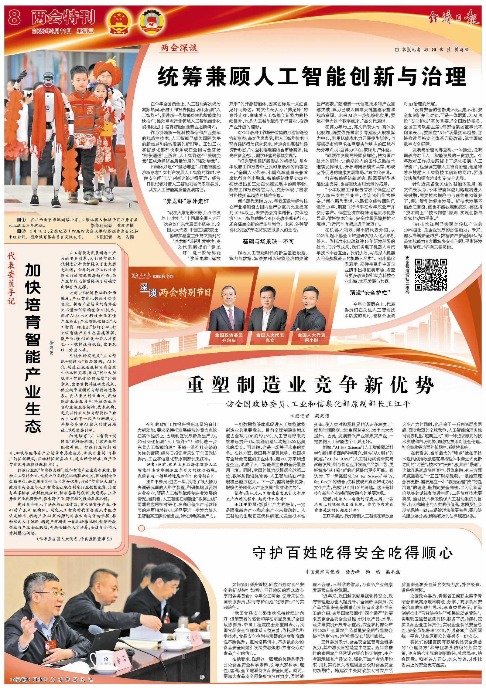 针对近期备受关注的智能体发展,高文代表认为,今年智能体应用落地将进入关键期,需要技术规范与伦理约束双管齐下,促进智能体健康发展。“新技术发展不能放任自流,但也不能被规制扼杀,要坚持‘技术向上’‘技术向善’原则,实现创新与监管的动态平衡。”