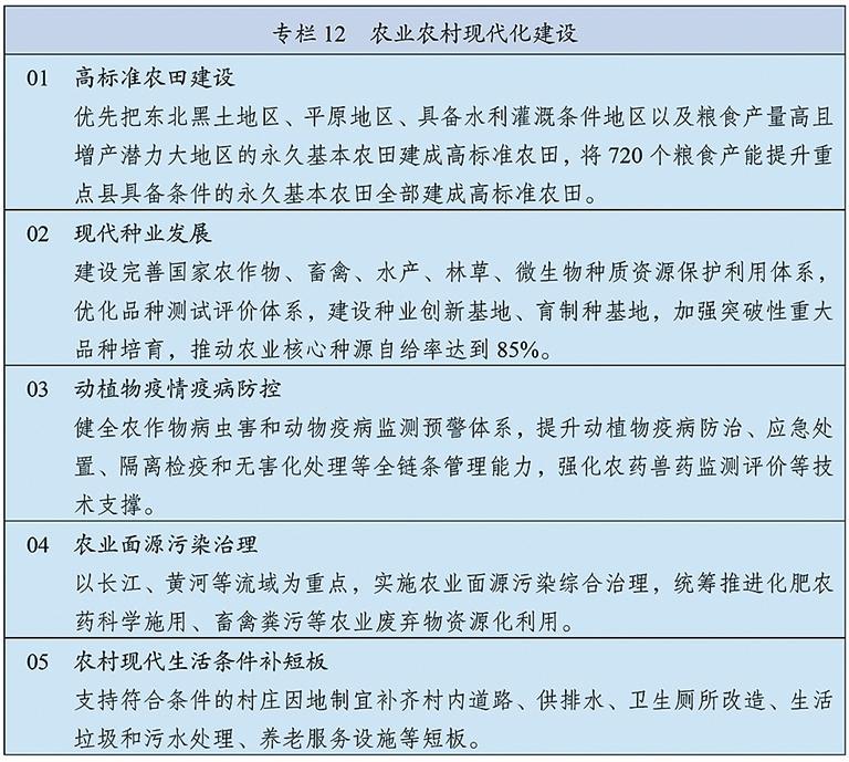 坚持以我为主、立足国内、确保产能、适度进口、科技支撑,提升粮食产购储加销协同保障能力,确保谷物基本自给、口粮绝对安全。严格落实耕地保护和粮食安全党政同责要求,严守耕地红线。加强粮食购销和储备管理,保持政府储备粮规模相对稳定,强化储备调节功能,健全粮食监管新模式。深入实施优质粮食工程,推进粮食流通提质增效。推进粮食产后全链条节约减损,实施全谷物行动计划。完善化肥储备制度,加强钾肥、磷肥等保供稳价。建立稳定可控的海外供应渠道,推进农产品进口多元化,适度进口紧缺优质品种,促进贸易和生产相协调。
