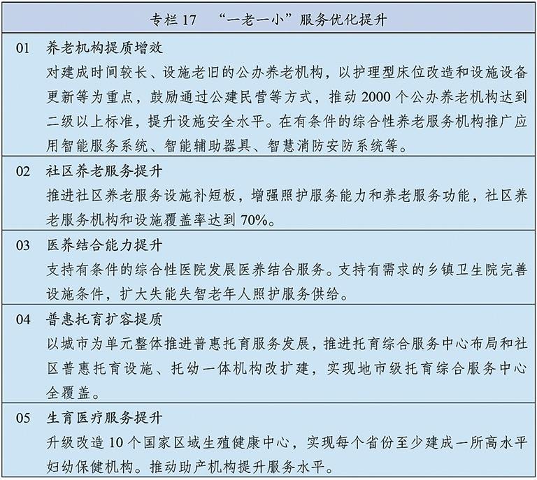 完善残疾人社会保障制度和关爱服务体系,促进残疾人事业全面发展。强化对重度残疾、多重残疾、一户多残等群体兜底保障,健全困难残疾人生活补贴、重度残疾人护理补贴制度及补贴标准动态调整机制,加强残疾儿童康复救助,健全残疾人辅助器具适配补贴制度。完善残疾人社区和家庭支持,加强重度残疾人托养照护,发展精神障碍社区康复。强化残疾人就业帮扶,完善按比例就业、集中就业、自主就业促进机制。发展残疾人文化体育。深入推进科技助残,加强公共设施、信息交流、社会服务无障碍环境建设。