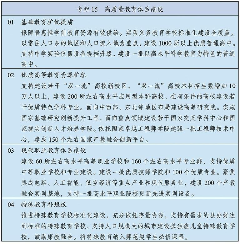 加强港澳与内地经贸、科技、人文等合作,完善便利港澳居民在内地发展和生活政策措施。有序推进与内地金融市场互联互通,深化与内地产学研创新协同。深化粤港澳合作,持续推动重点领域合作实现突破,促进港口、机场和轨道交通协同发展,建设广州至珠海(澳门)高铁,推进港深西部铁路前期工作。深化琴澳一体化发展,高质量建设前海、南沙、河套等重大合作平台。建设澳门国际机场横琴前置货站,推进澳琴国际教育(大学)城建设,支持澳门高校在横琴延伸办学。健全香港、澳门在国家对外开放中更好发挥作用机制,支持港澳深度参与高质量共建“一带一路”,发挥专业服务优势协助企业“走出去”。发挥港澳在中西文明交流互鉴中的重要窗口作用。