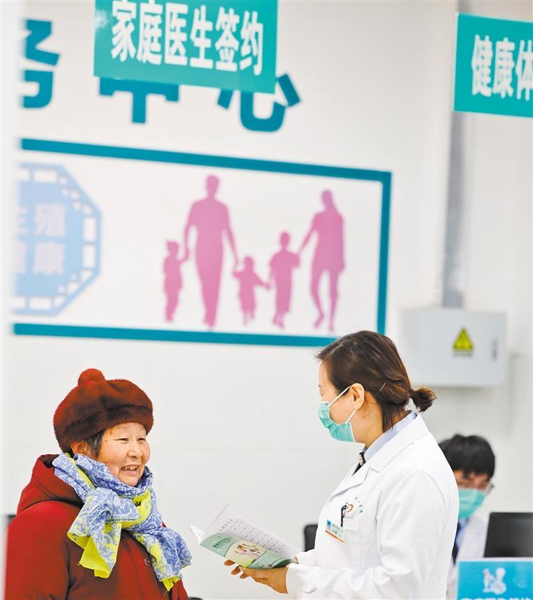 1月12日,山东省临沂市郯城县郯城街道卫生院健康驿站,医生向居民宣传家庭医生签约知识。近年来,全国各地积极打造“15分钟养老服务圈”,涵盖社区嵌入式养老机构、家庭医生签约服务及日间照料中心等多元服务体系。