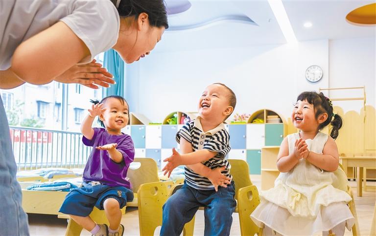 2025年6月11日,安徽省芜湖市繁昌区繁阳托育服务中心,小朋友在老师的陪伴下玩游戏。目前,我国共有12.6万家托育服务机构,今年中央财政将安排近1000亿元育儿补贴补助资金。