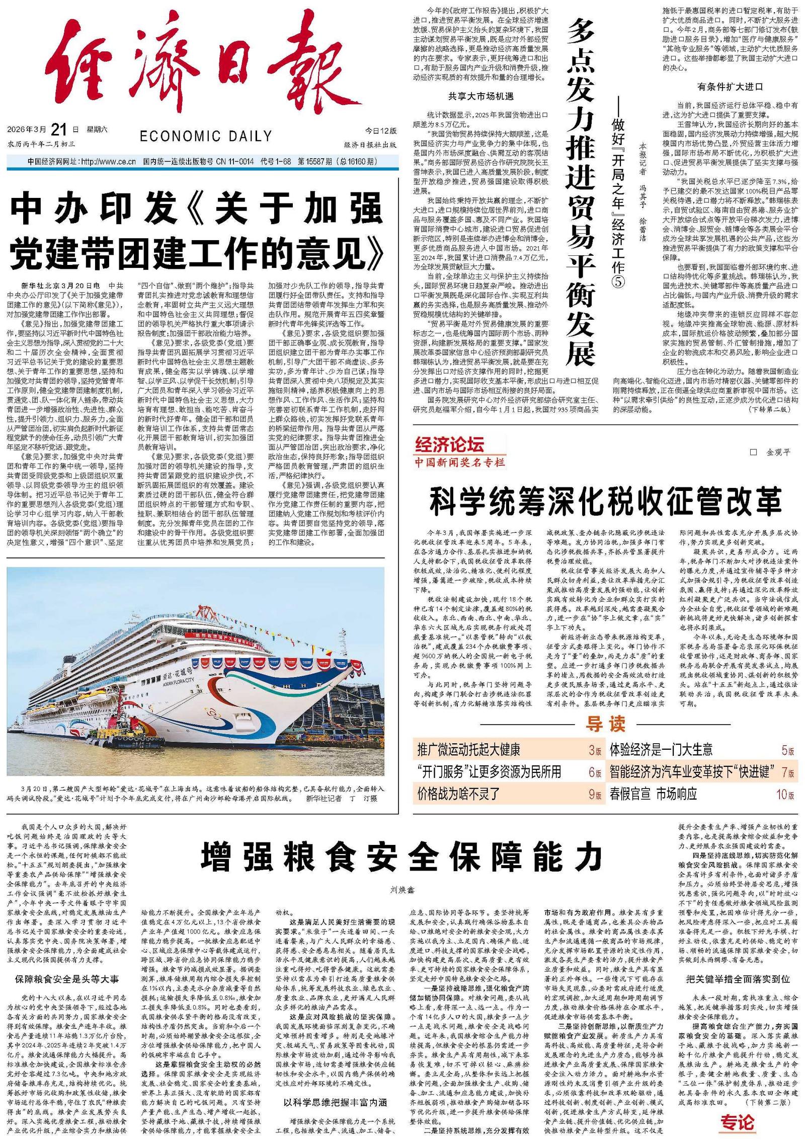 今年以来,无论是生态环境部和国家税务总局签署备忘录深化环保税征收管理协作,还是财政部、商务部、国家税务总局联合开展有奖发票试点,均展现出税收领域重协同、谋创新的积极势头。站在“十五五”新起点上,通过依法联动共治,我国税收征管改革未来可期。