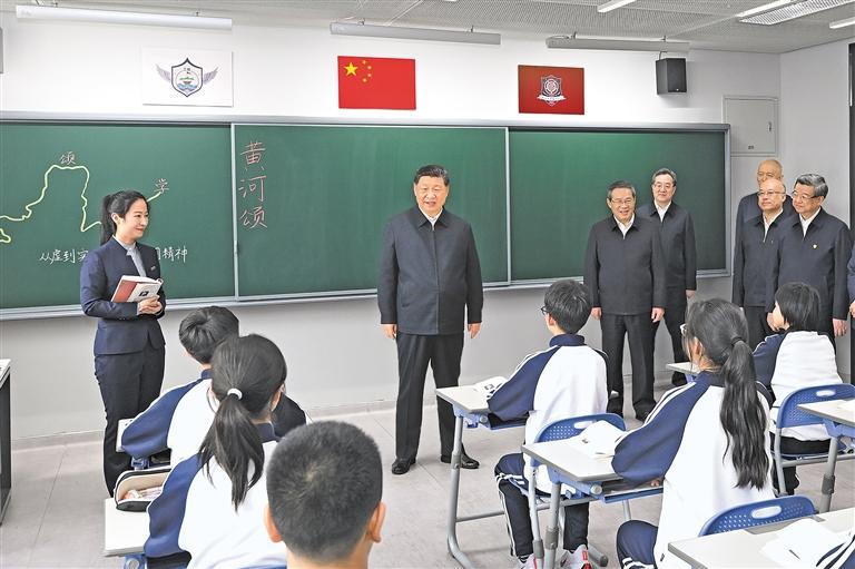 北京市援建的北京四中雄安校区2023年8月投入使用,现有学生380多人。教学楼里,学生们正在上课。习近平走进初一(2)班教室,同师生交谈,了解教学情况。他希望把北京四中办学的好经验好做法带过来,用心用情呵护孩子们身心健康,促进孩子们全面发展。