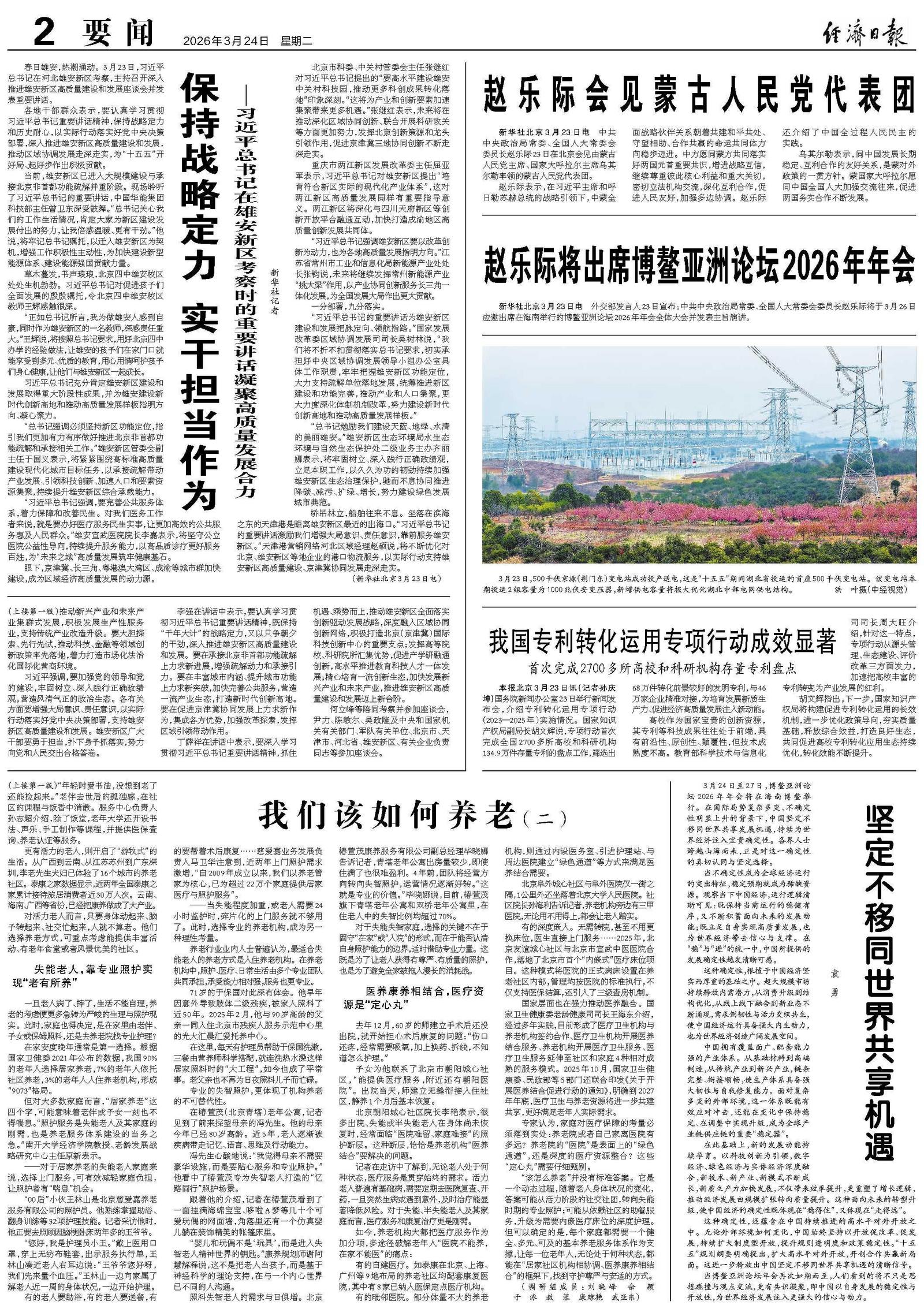 新华社河北雄安新区3月23日电 中共中央总书记、国家主席、中央军委主席习近平23日在河北雄安新区考察,主持召开深入推进雄安新区高质量建设和发展座谈会并发表重要讲话。他强调,要牢牢把握雄安新区作为北京非首都功能疏解集中承载地的首要功能定位,保持战略定力和历史耐心,进一步解放思想、开拓思路、加强协调、凝聚合力,以改革创新为引领增强内生发展动力,以要素资源合理集聚为重点激发新区活力,努力建设新时代创新高地和推动高质量发展样板。