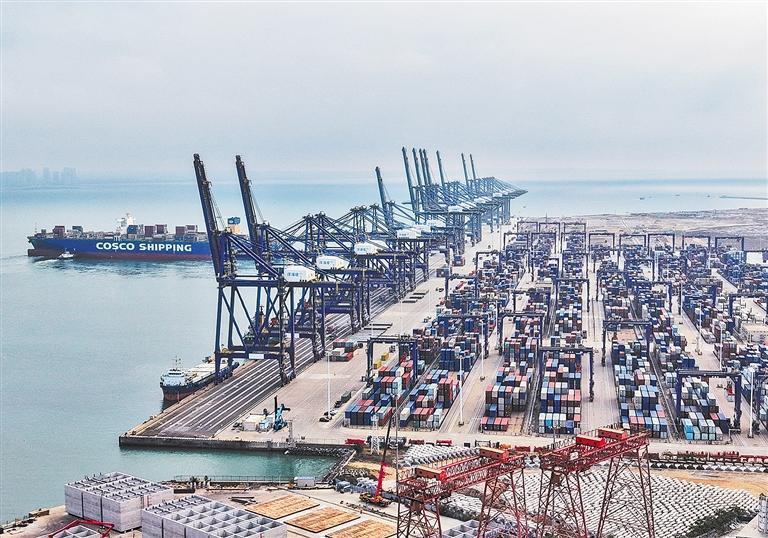 3月21日,一艘满载集装箱的货轮从海南洋浦港扬帆起航。海南自贸港封关运作3个月来,洋浦港口岸设施设备稳定、通关效率提升,自贸港“零关税”“加工增值免关税”等政策红利充分释放。叶龙斌摄(中经视觉)