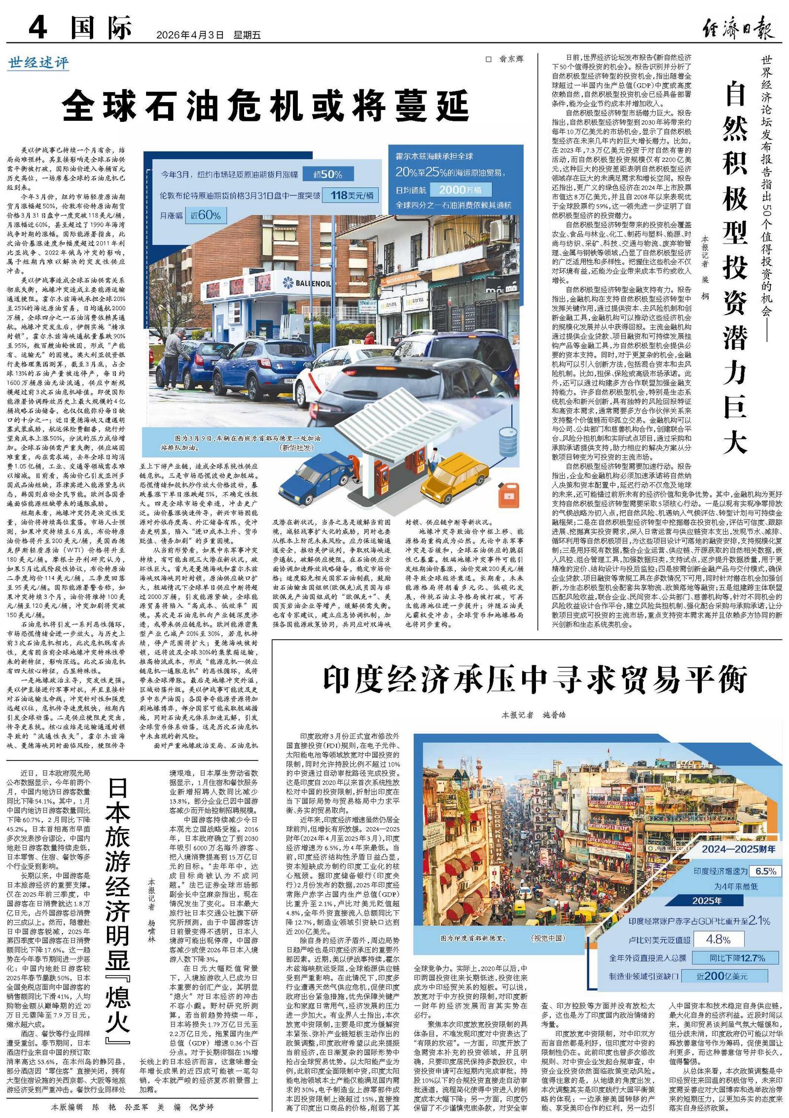 面对严重地缘政治变局、石油危机及潜在新状况,当务之急是缓解当前困境,减轻战事扩大化的威胁,同时也要从根本上防范未来风险。应力保运输通道安全,推动美伊谈判,争取双海峡逐步通航,破解供应梗阻。在石油供应方面协调加速释放战略储备,稳定市场价格;适度豁免相关国家石油制裁,鼓励由石油输出国组织(欧佩克)成员国与非欧佩克产油国组成的“欧佩克+”、美国页岩油企业等增产,缓解供需失衡。也有专家建议,建立应急协调机制,加强各国能源政策协同,共同应对双海峡封锁、供应链中断等新状况。