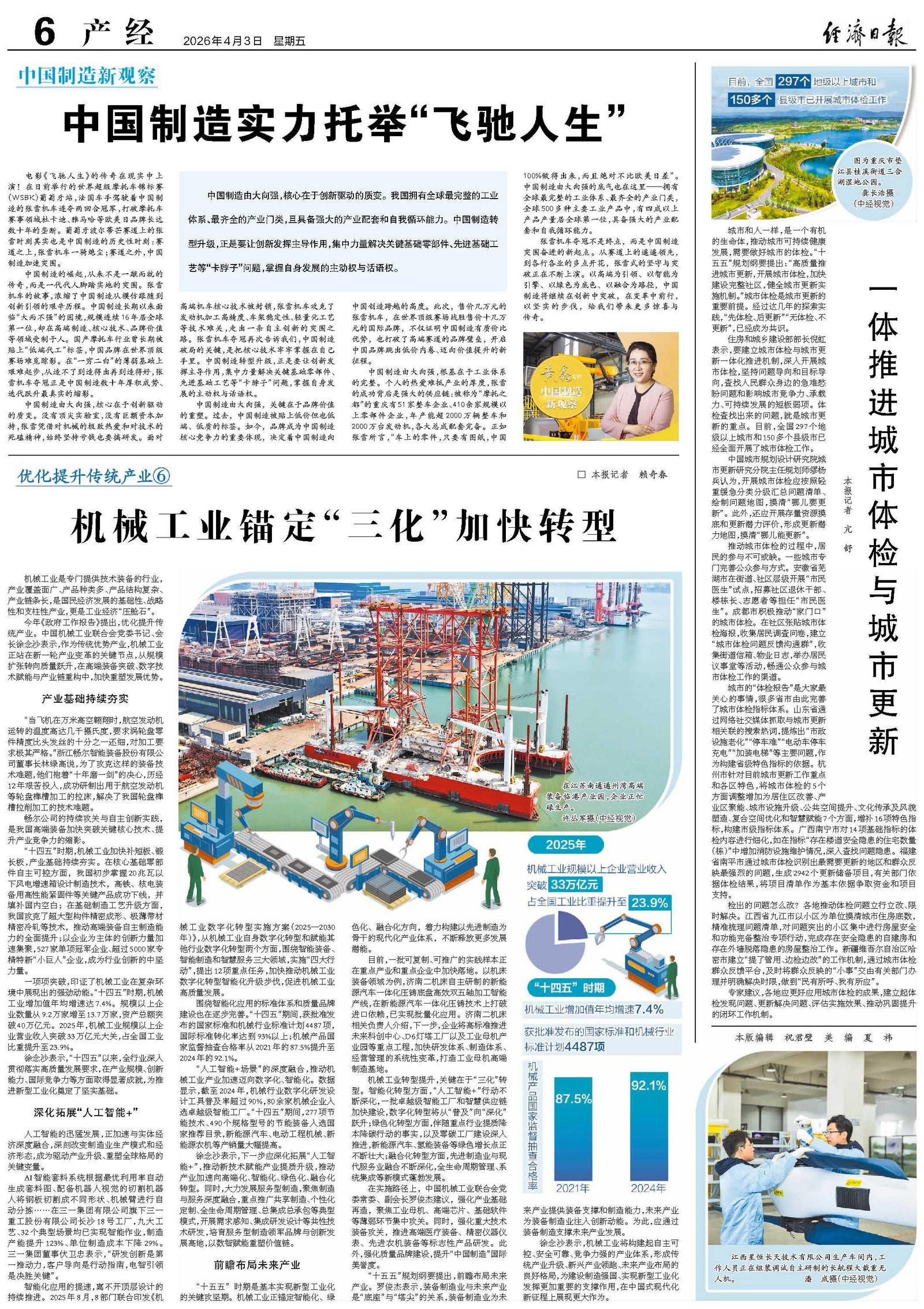 张雪机车夺冠不是终点,而是中国制造突围奋进的新起点。从赛道上的遥遥领先,到各行各业的多点开花,张雪式的坚守与突破正在不断上演。以高端为引领、以智能为引擎、以绿色为底色、以融合为路径,中国制造将继续在创新中突破,在变革中前行,以坚实的步伐,给我们带来更多惊喜与传奇。
