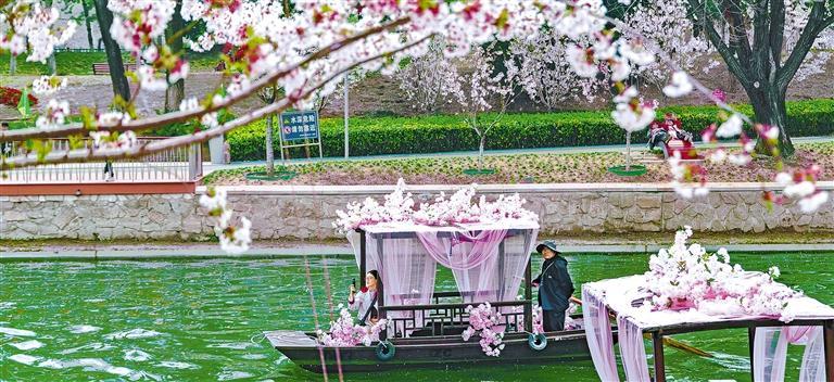 4月3日,北京市朝阳区北小河流域“樱花河流”迎来首航。该河段沿岸栽植近6000株樱花,搭配海棠等春季花卉次第绽放。近年来,北京河湖生态环境持续向好,多条河流变身繁花似锦的滨水画廊。