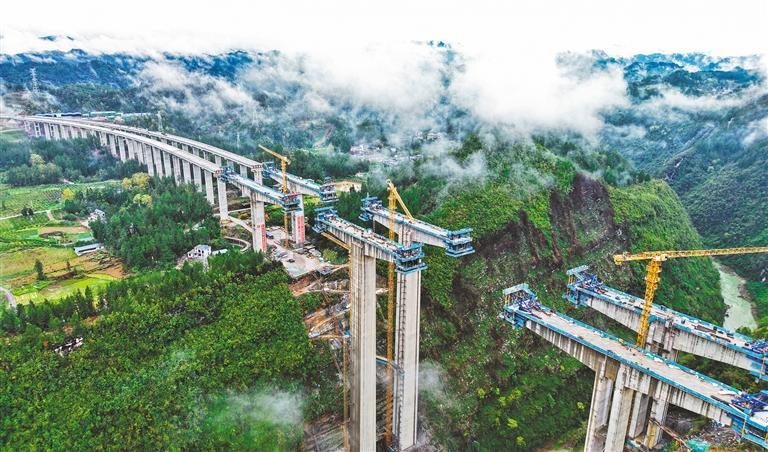 3月30日,湖北恩施州咸丰县境内,利咸高速大河特大桥建设正酣。