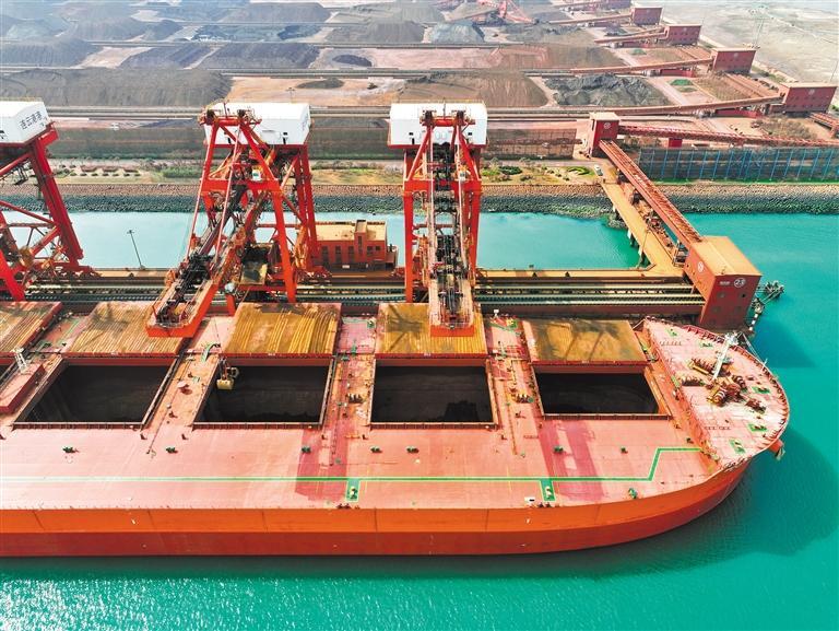 3月29日,江苏省连云港新苏港码头,货轮在卸运进口铁矿石。