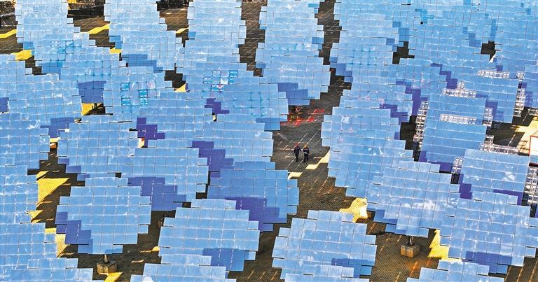 3月24日,位于四川省攀枝花市西区的多面体钛酸锶聚光制氢(加氢)一体站中试基地,工作人员在巡检多边形定日镜。这是我国首条光解水制氢生产线,产出氢气纯度可达99.9%。李向雨摄(中经视觉)
