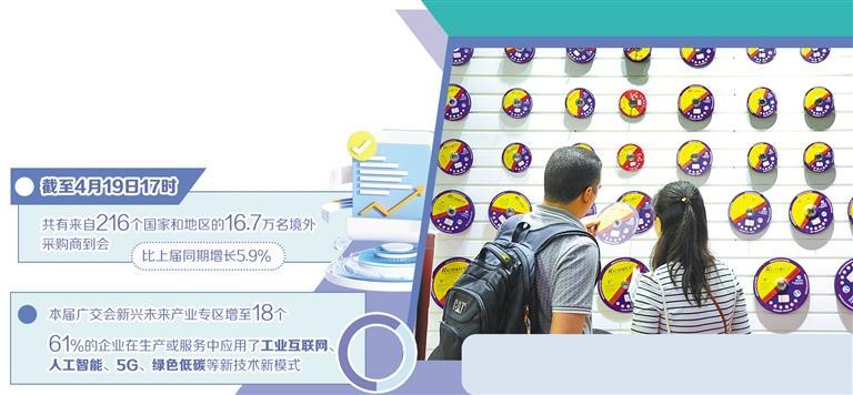 潮起珠江,商聚羊城。4月19日,以“先进制造”为主题的第139届广交会第一期闭幕。截至当日17时,共有来自216个国家和地区的16.7万名境外采购商到会,比上届同期增长5.9%。