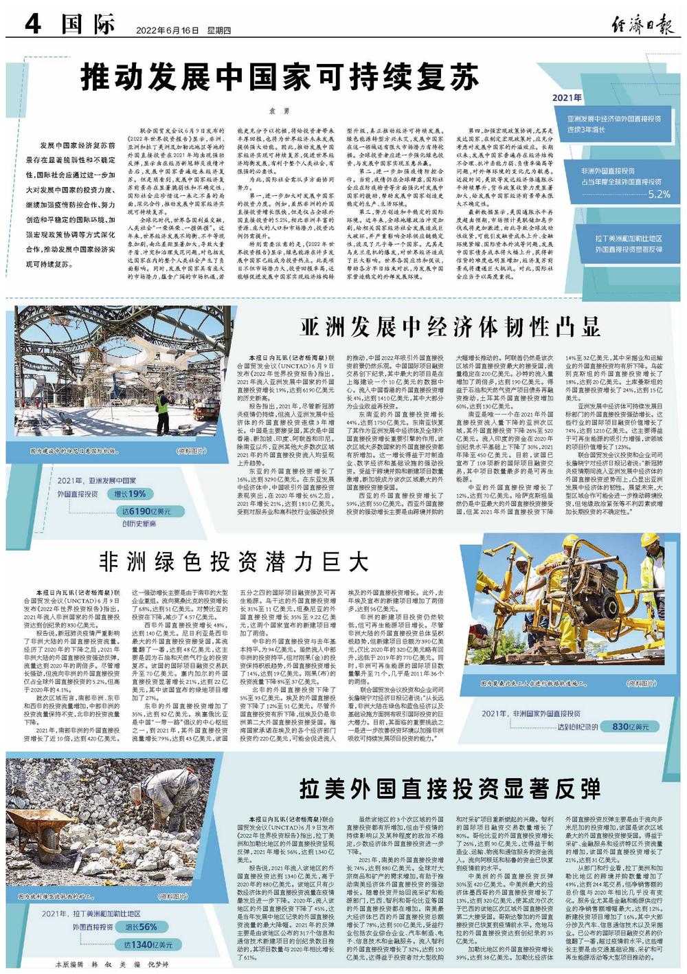 推动发展中国家可持续复苏