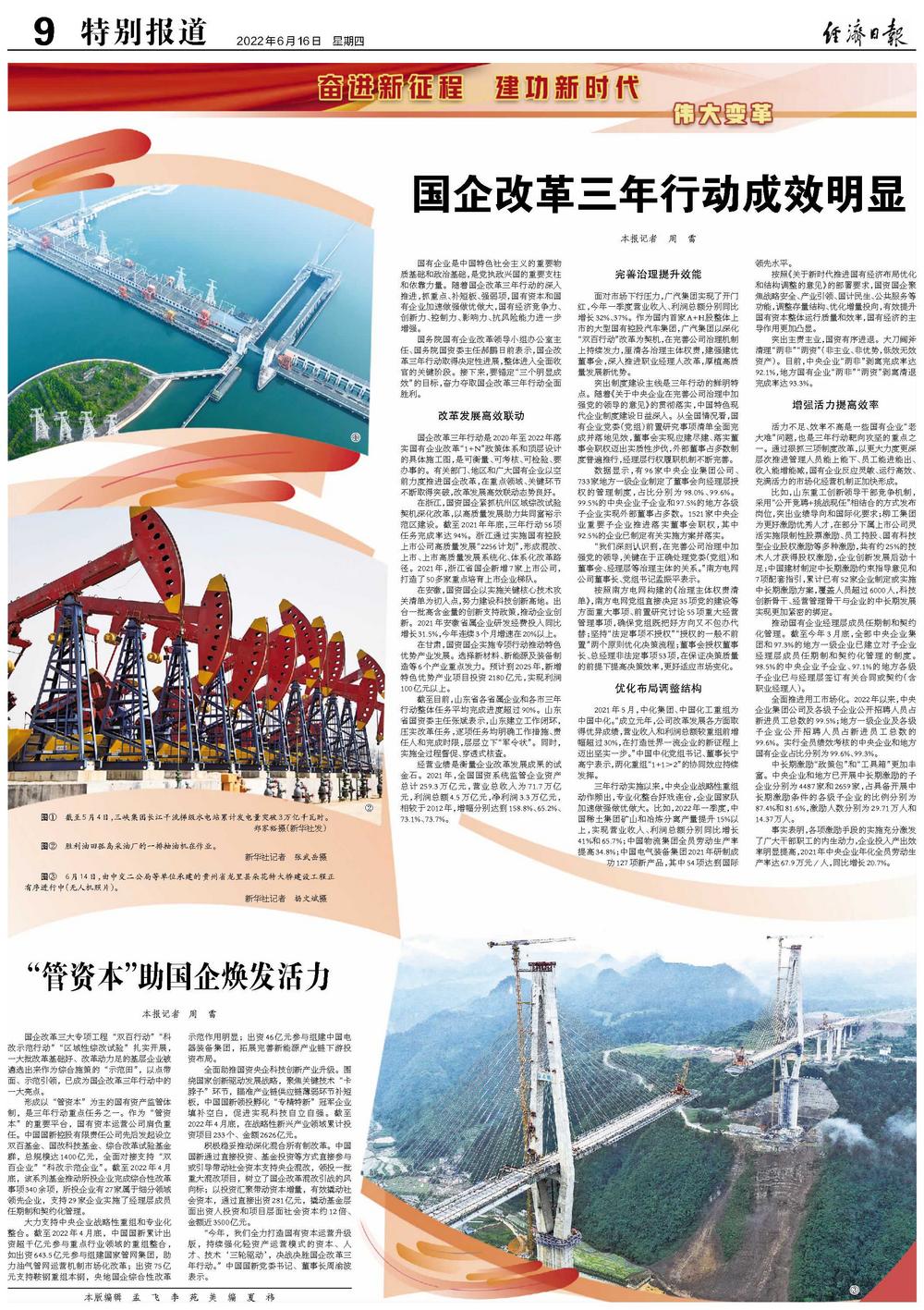 国企改革三年行动成效明显