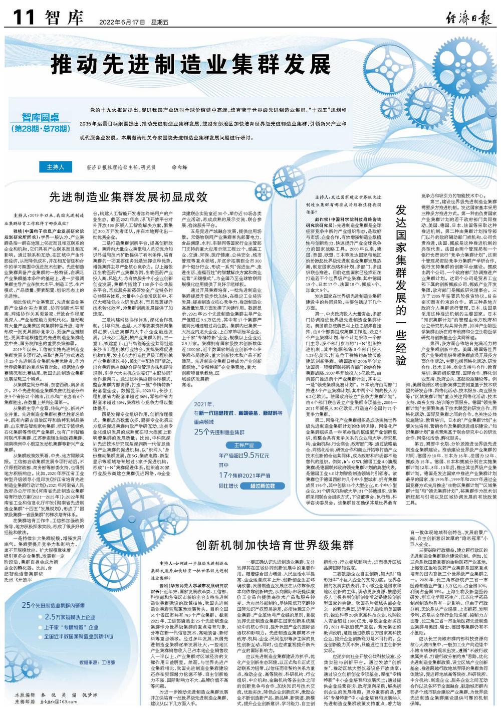 推动先进制造业集群发展