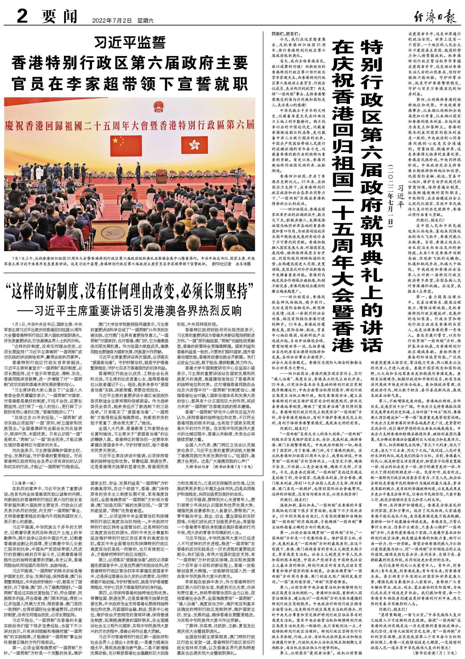 在庆祝香港回归祖国二十五周年大会暨香港特别行政区第六届政府就职典礼上的讲话