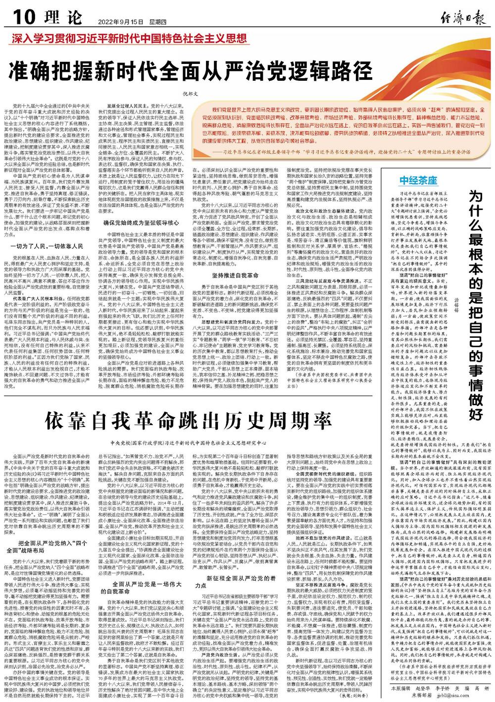 依靠自我革命跳出历史周期率