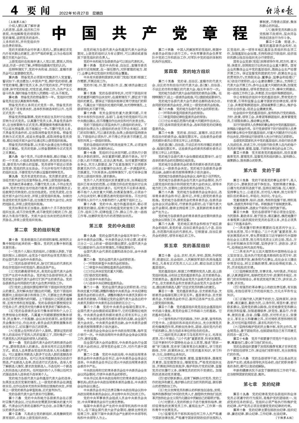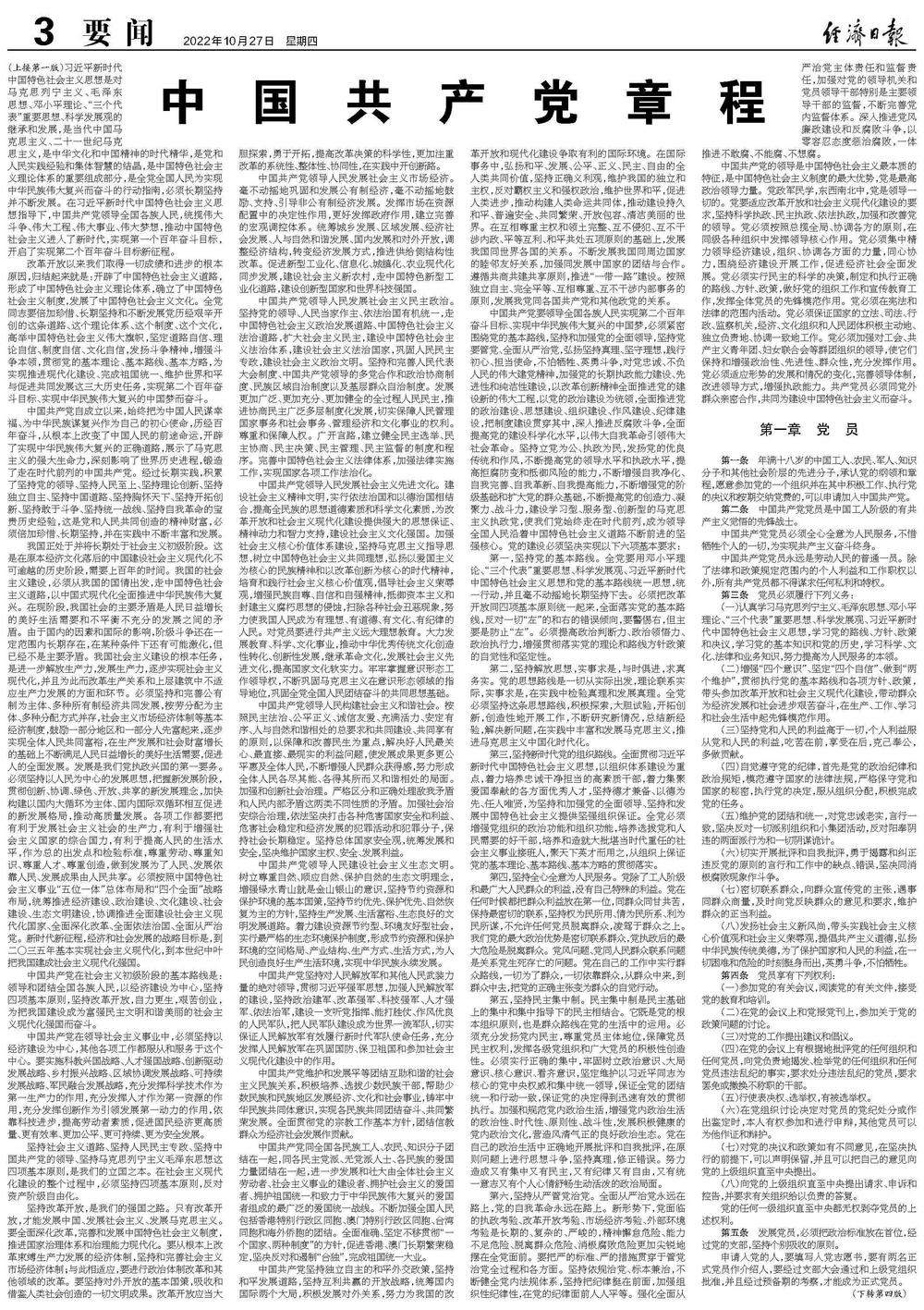 就党的二十大通过的《中国共产党章程(修正案)》答记者问