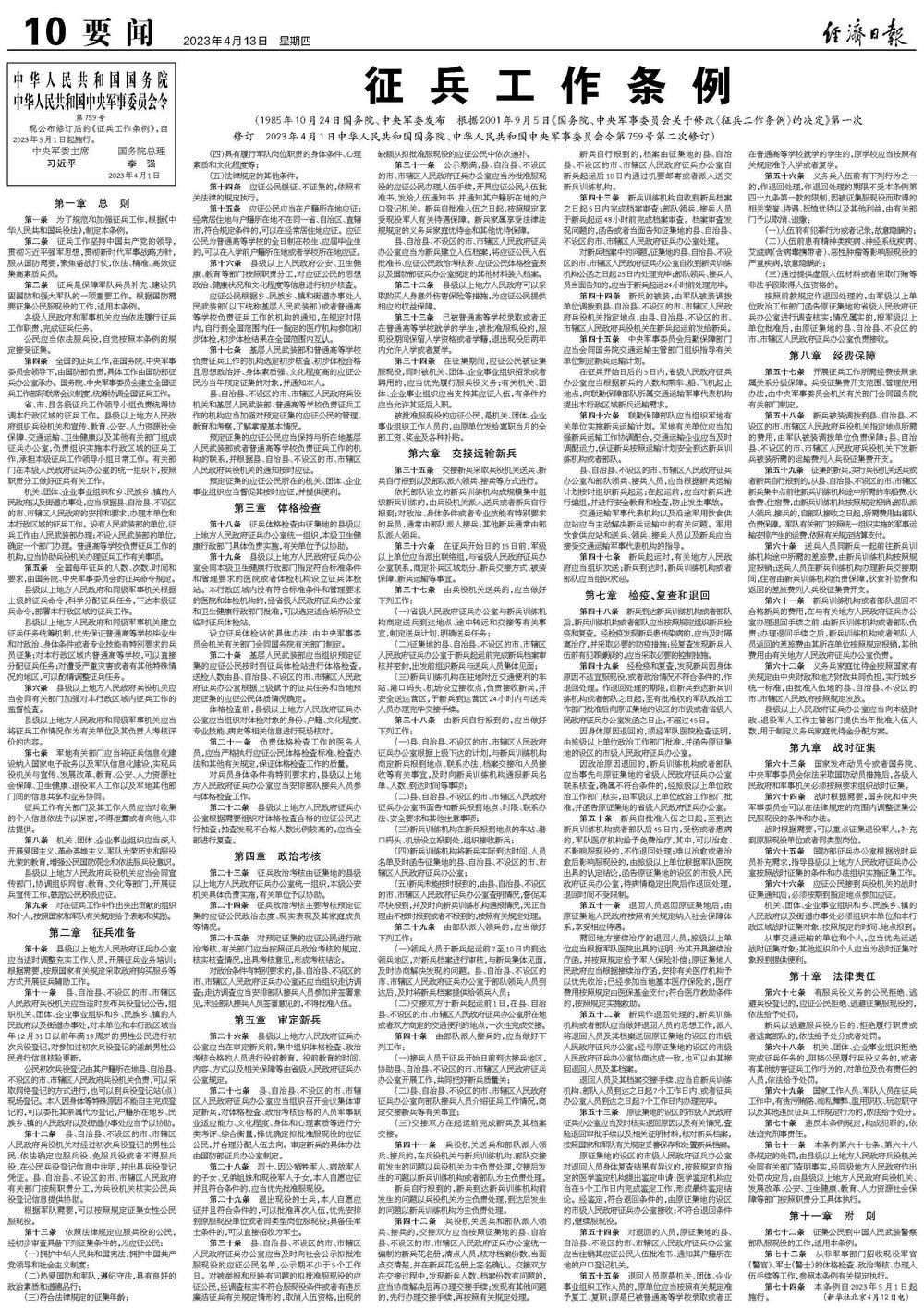 国务院、中央军委公布实施新修订的《征兵工作条例》